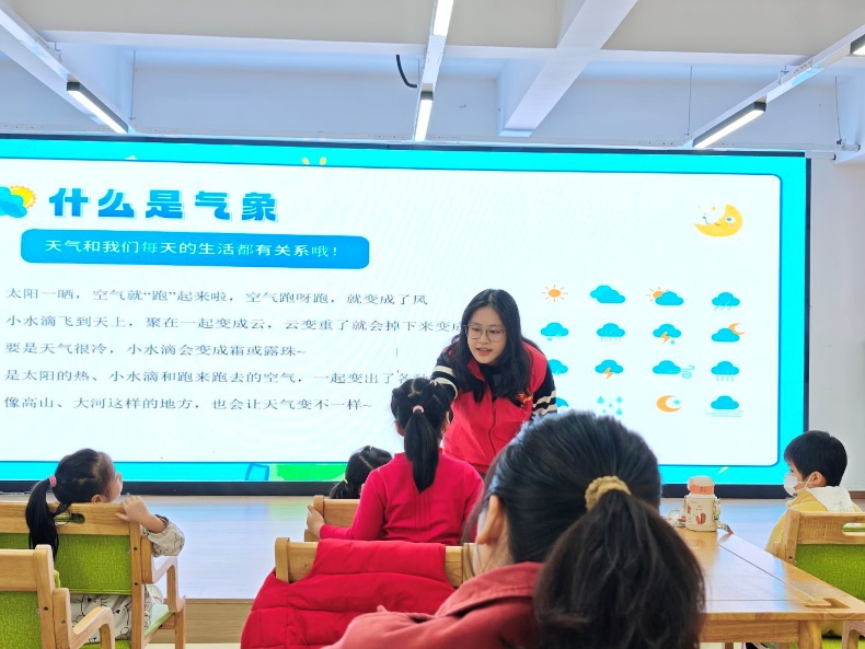 则徐人才实验班的团员们共同演绎了情景剧《气象小卫士的安全约定》,将台风暴雨天的安全知识融入社区邻里日常的剧情中,以趣味性的科普方式和童趣的语言,让气象知识更有效地被小朋友们理解和接受。故事的最后,“气象小卫士”与小朋友们共同喊出口号,这种增加互动性的形式让气象知识瞬间“活”了起来。