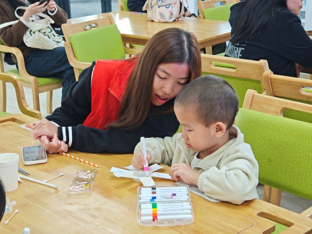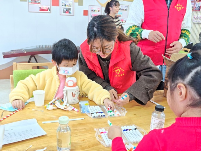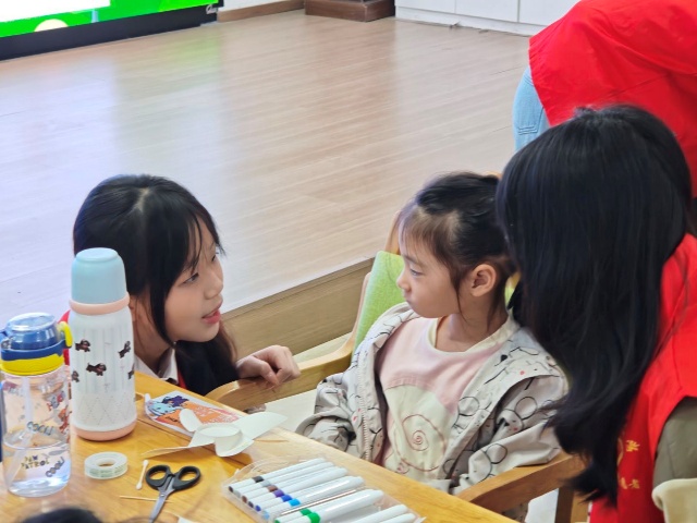 为了让小朋友们深入学习气象知识、展现动手能力,团支部设置了DIY风车手工活动,团员们各自带领一位小朋友,耐心陪伴,帮助他们制作风车。这种“做中学”的方式,以手为媒,以践为知,是则徐人才实验班“实践育人”理念的缩影。